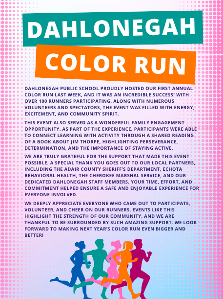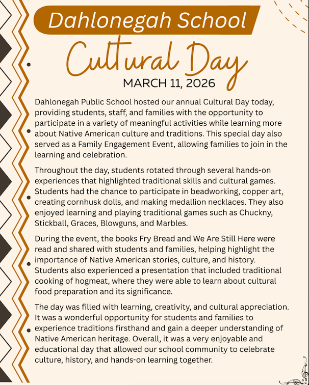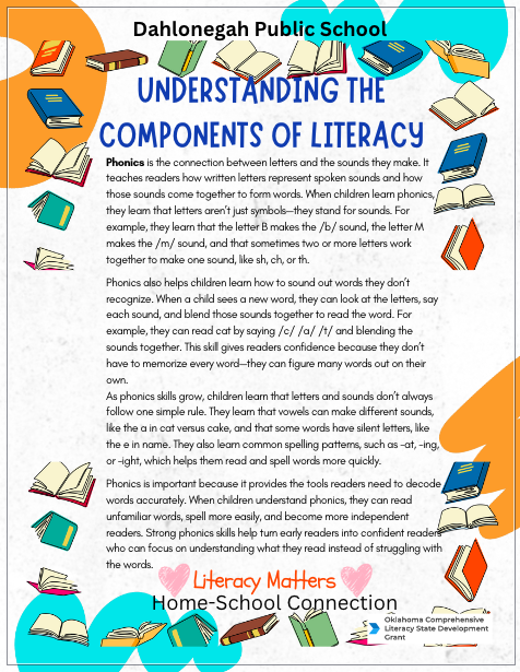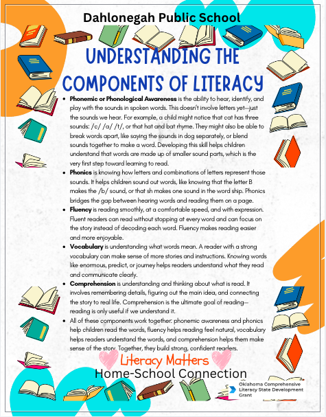 Oklahoma Comprehensive Literacy State Comprehensive Grant was awarded to Dahlonegah School in April 2025. This grant promotes literacy development in the Birth to 8th grade population. This page is designed to update our families on the activities that we have going on that this amazing grant has provided!